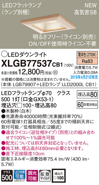 Panasonic LED ¥À¥¦¥ó¥é¥¤¥È XLGB77537CB1
