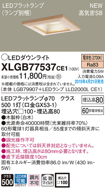 Panasonic LED ¥À¥¦¥ó¥é¥¤¥È XLGB77537CE1