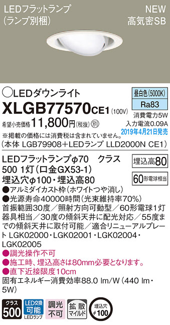 Panasonic LED ¥À¥¦¥ó¥é¥¤¥È XLGB77570CE1