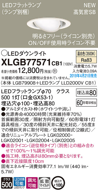Panasonic LED ¥À¥¦¥ó¥é¥¤¥È XLGB77571CB1