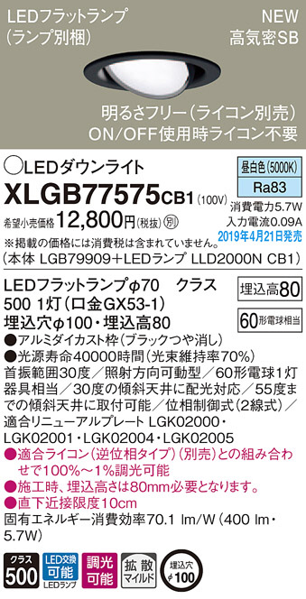 Panasonic LED ¥À¥¦¥ó¥é¥¤¥È XLGB77575CB1