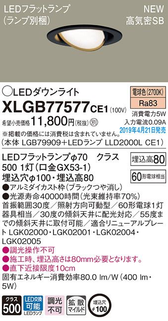 Panasonic LED ¥À¥¦¥ó¥é¥¤¥È XLGB77577CE1