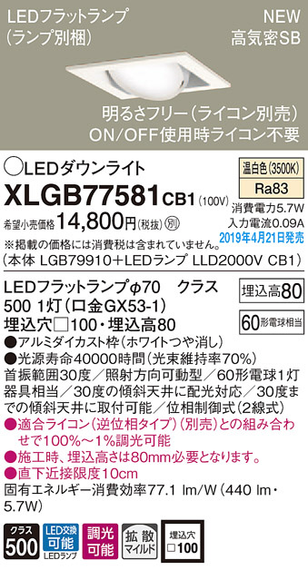 Panasonic LED ¥À¥¦¥ó¥é¥¤¥È XLGB77581CB1
