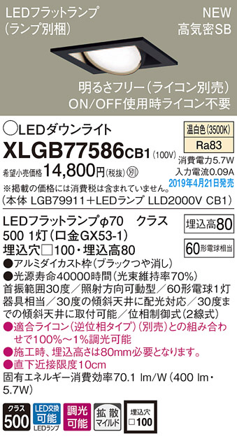 Panasonic LED ¥À¥¦¥ó¥é¥¤¥È XLGB77586CB1