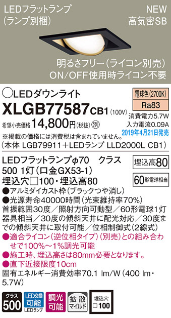 Panasonic LED ¥À¥¦¥ó¥é¥¤¥È XLGB77587CB1