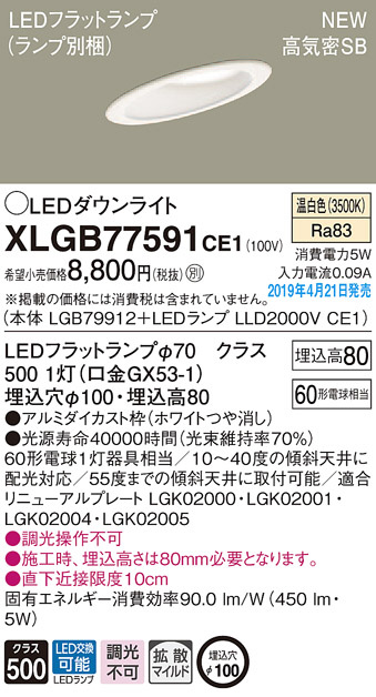 Panasonic LED ¥À¥¦¥ó¥é¥¤¥È XLGB77591CE1