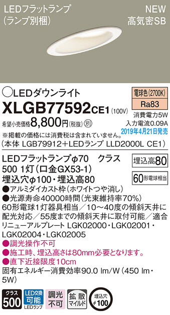 Panasonic LED ¥À¥¦¥ó¥é¥¤¥È XLGB77592CE1