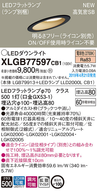 Panasonic LED ¥À¥¦¥ó¥é¥¤¥È XLGB77597CB1
