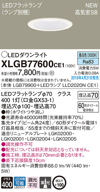 Panasonic LED ¥À¥¦¥ó¥é¥¤¥È XLGB77600CE1
