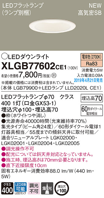 Panasonic LED ¥À¥¦¥ó¥é¥¤¥È XLGB77602CE1