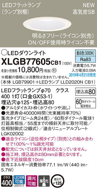 Panasonic LED ¥À¥¦¥ó¥é¥¤¥È XLGB77605CB1