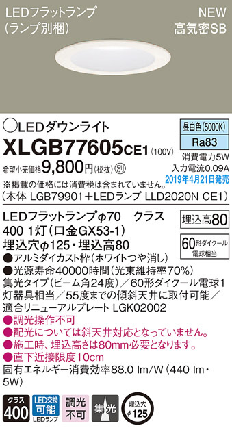 Panasonic LED ¥À¥¦¥ó¥é¥¤¥È XLGB77605CE1