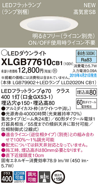 Panasonic LED ¥À¥¦¥ó¥é¥¤¥È XLGB77610CB1