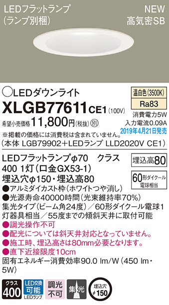 Panasonic LED ¥À¥¦¥ó¥é¥¤¥È XLGB77611CE1