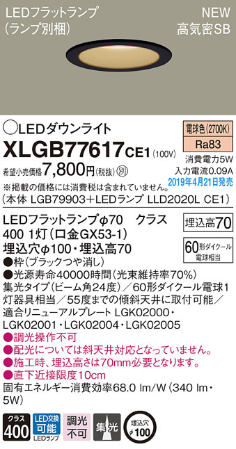 Panasonic LED ¥À¥¦¥ó¥é¥¤¥È XLGB77617CE1