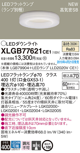 Panasonic LED ¥À¥¦¥ó¥é¥¤¥È XLGB77621CE1