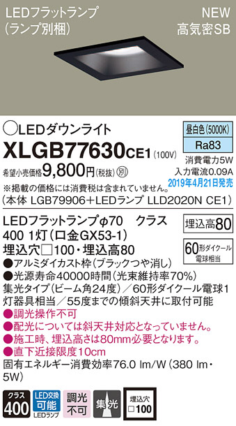 Panasonic LED ¥À¥¦¥ó¥é¥¤¥È XLGB77630CE1