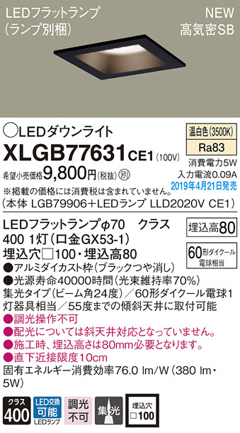 Panasonic LED ¥À¥¦¥ó¥é¥¤¥È XLGB77631CE1