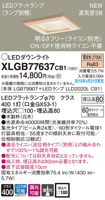Panasonic LED ¥À¥¦¥ó¥é¥¤¥È XLGB77637CB1