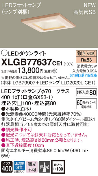 Panasonic LED ¥À¥¦¥ó¥é¥¤¥È XLGB77637CE1