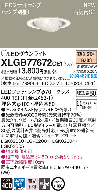 Panasonic LED ¥À¥¦¥ó¥é¥¤¥È XLGB77672CE1