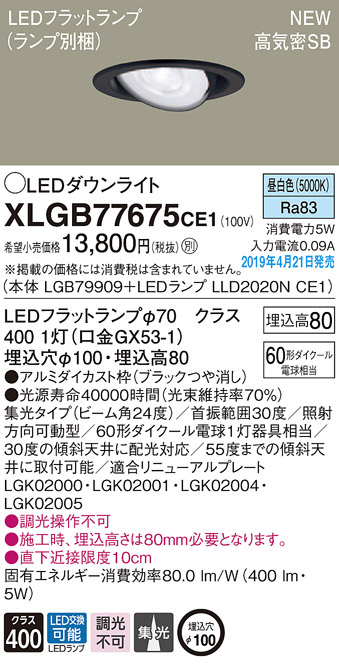 Panasonic LED ¥À¥¦¥ó¥é¥¤¥È XLGB77675CE1