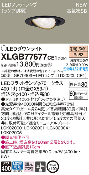 Panasonic LED ¥À¥¦¥ó¥é¥¤¥È XLGB77677CE1