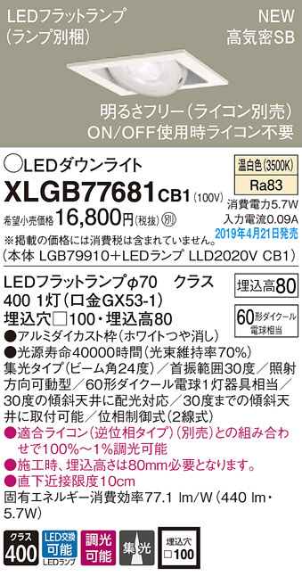 Panasonic LED ¥À¥¦¥ó¥é¥¤¥È XLGB77681CB1
