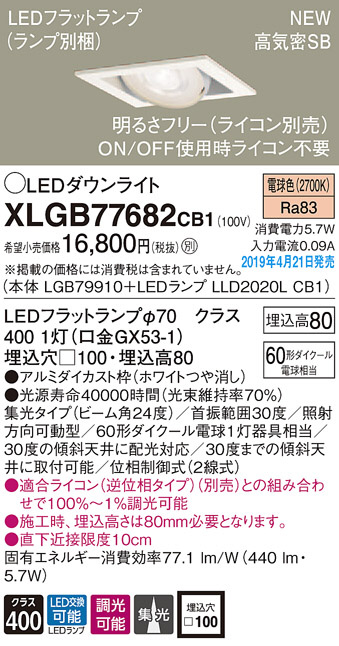 Panasonic LED ¥À¥¦¥ó¥é¥¤¥È XLGB77682CB1