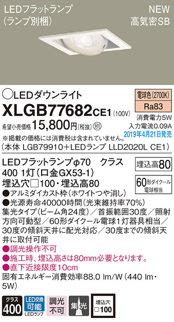Panasonic LED ¥À¥¦¥ó¥é¥¤¥È XLGB77682CE1