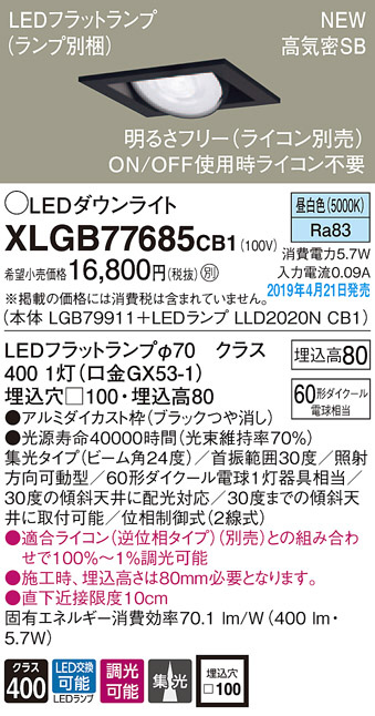 Panasonic LED ¥À¥¦¥ó¥é¥¤¥È XLGB77685CB1