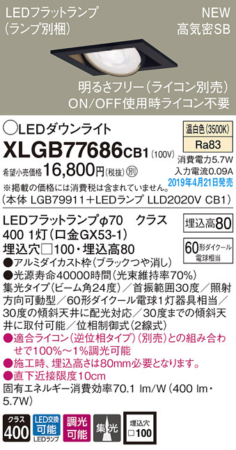 Panasonic LED ¥À¥¦¥ó¥é¥¤¥È XLGB77686CB1
