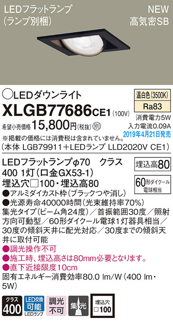 Panasonic LED ¥À¥¦¥ó¥é¥¤¥È XLGB77686CE1