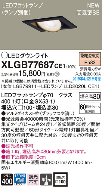 Panasonic LED ¥À¥¦¥ó¥é¥¤¥È XLGB77687CE1