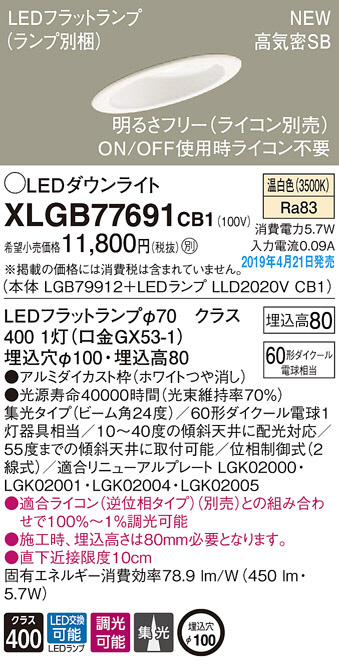 Panasonic LED ¥À¥¦¥ó¥é¥¤¥È XLGB77691CB1