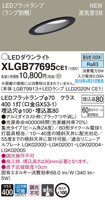 Panasonic LED ¥À¥¦¥ó¥é¥¤¥È XLGB77695CE1