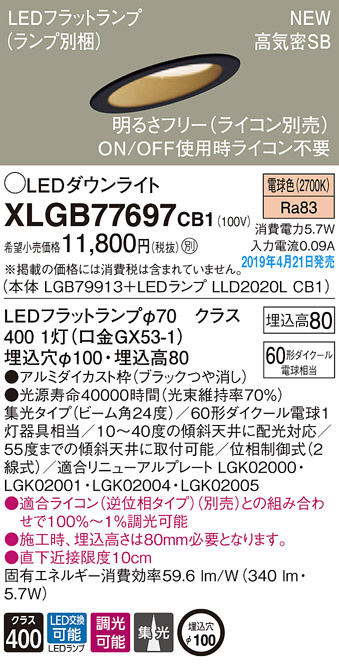 Panasonic LED ¥À¥¦¥ó¥é¥¤¥È XLGB77697CB1