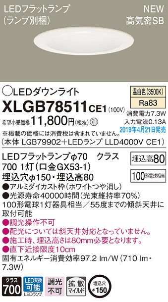 Panasonic LED ¥À¥¦¥ó¥é¥¤¥È XLGB78511CE1