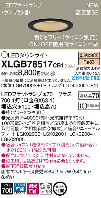 Panasonic LED ¥À¥¦¥ó¥é¥¤¥È XLGB78517CB1