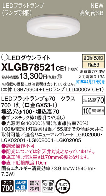 Panasonic LED ¥À¥¦¥ó¥é¥¤¥È XLGB78521CE1