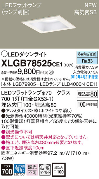 Panasonic LED ¥À¥¦¥ó¥é¥¤¥È XLGB78525CE1