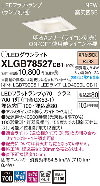 Panasonic LED ¥À¥¦¥ó¥é¥¤¥È XLGB78527CB1