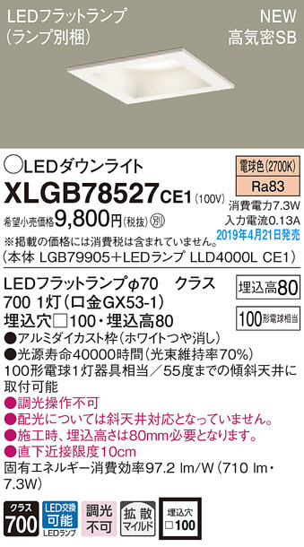 Panasonic LED ¥À¥¦¥ó¥é¥¤¥È XLGB78527CE1
