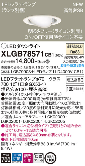 Panasonic LED ¥À¥¦¥ó¥é¥¤¥È XLGB78571CB1