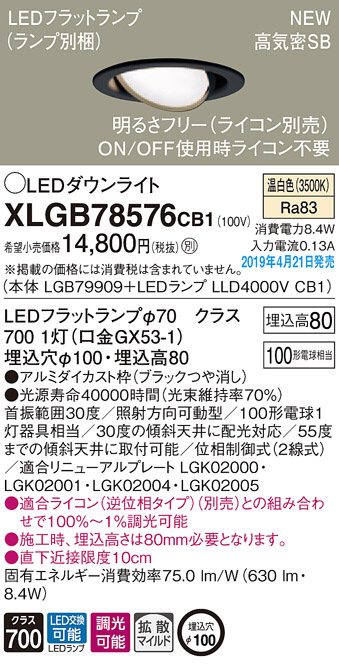 Panasonic LED ¥À¥¦¥ó¥é¥¤¥È XLGB78576CB1