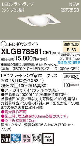 Panasonic LED ¥À¥¦¥ó¥é¥¤¥È XLGB78581CE1