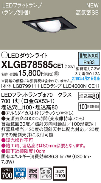 Panasonic LED ¥À¥¦¥ó¥é¥¤¥È XLGB78585CE1