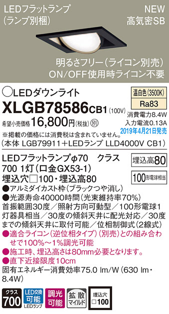 Panasonic LED ¥À¥¦¥ó¥é¥¤¥È XLGB78586CB1