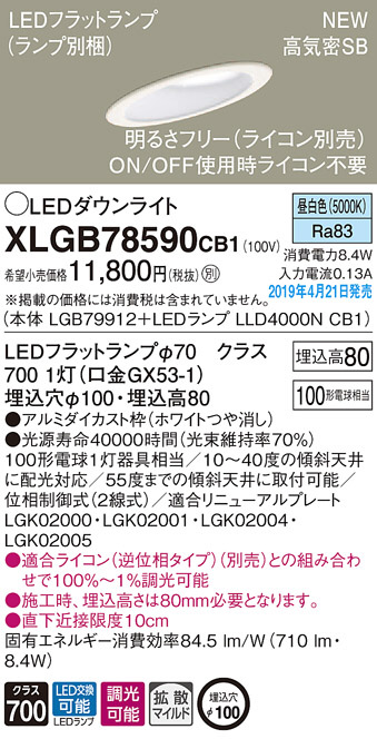 Panasonic LED ¥À¥¦¥ó¥é¥¤¥È XLGB78590CB1