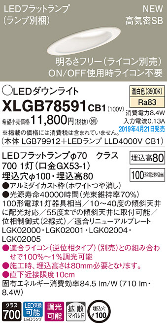 Panasonic LED ¥À¥¦¥ó¥é¥¤¥È XLGB78591CB1